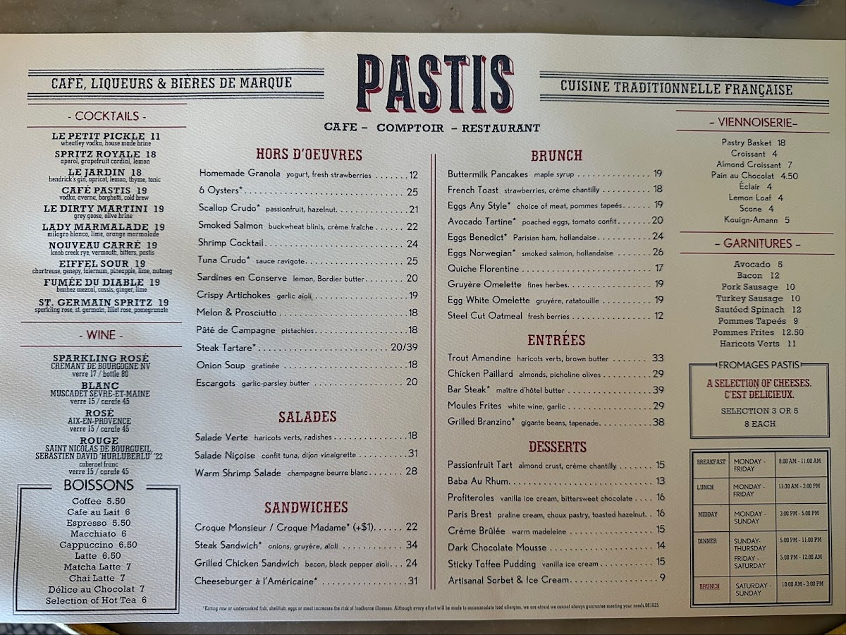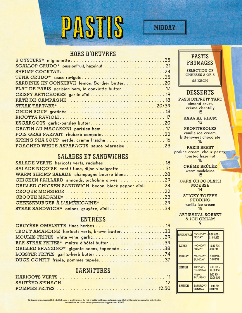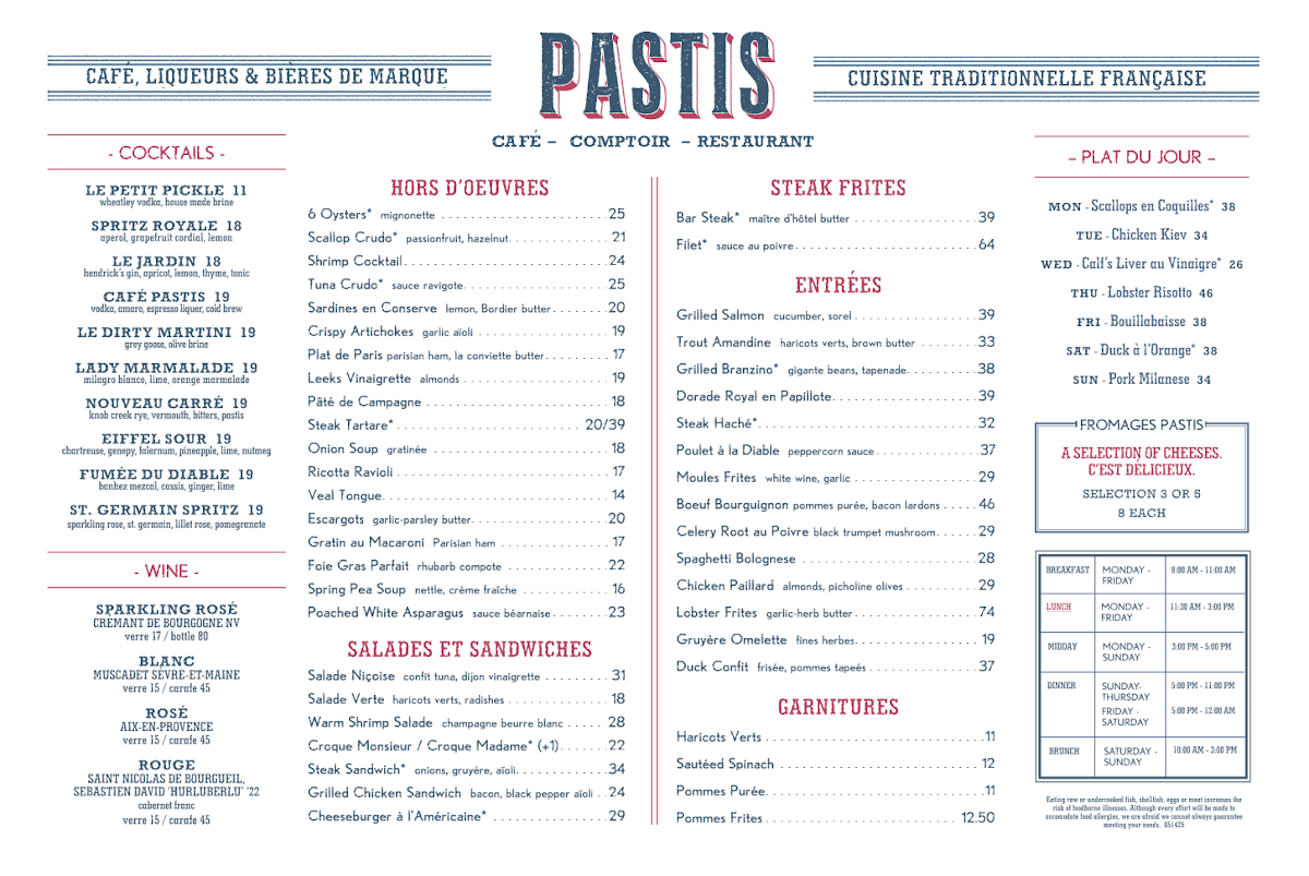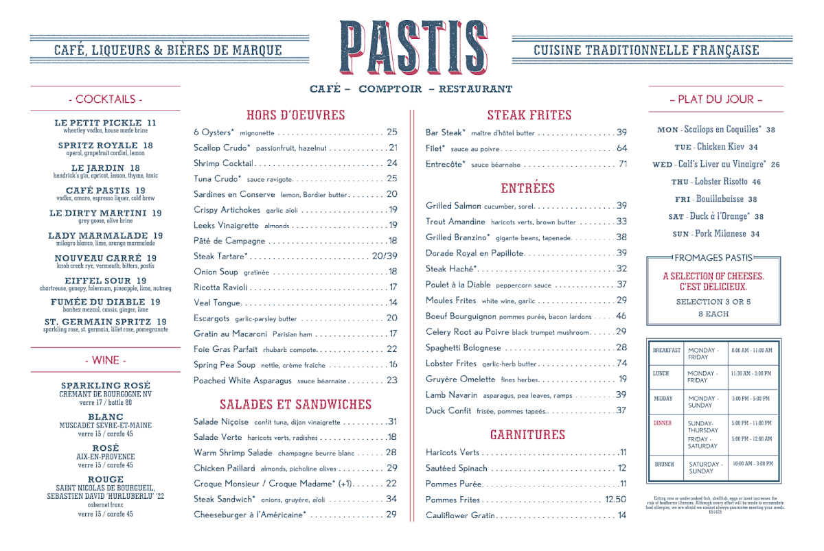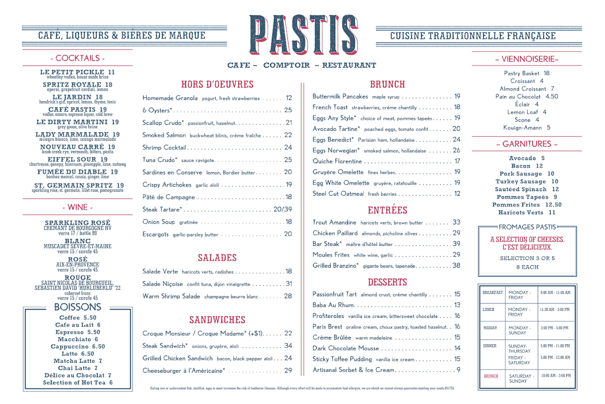For reservations, call +1 212-929-4844. Let Pastis be your next gastronomic destination!